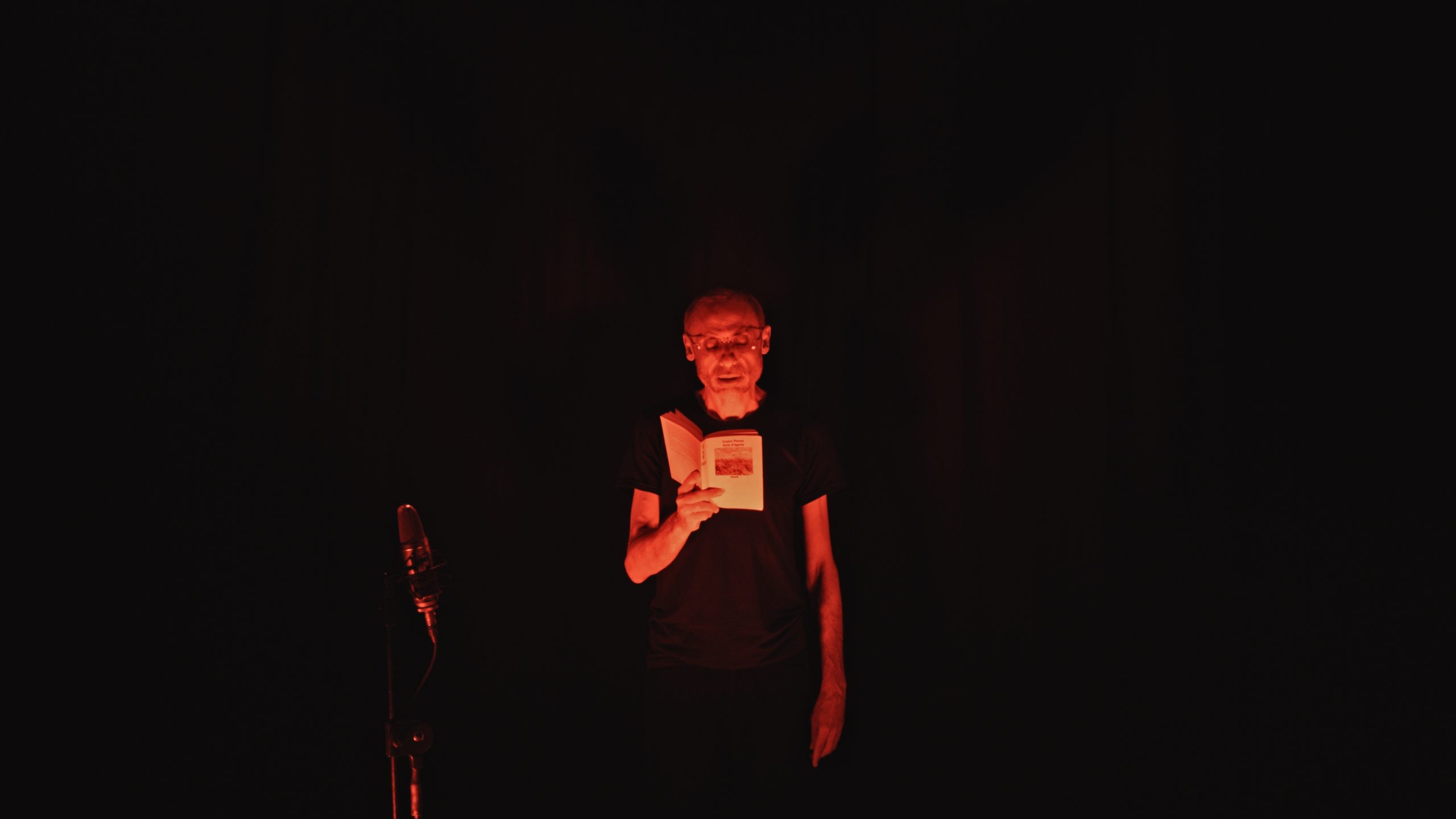 An actor, alone in an empty stage space, reads the first three stories of Cesare Pavese’s August Feria, in a tiring and intense melee with the development and rhythm of the prose. Mountain, hilly and marine landscapes accompany and articulate the narration. The notes of a piano open and close listening and viewing.
