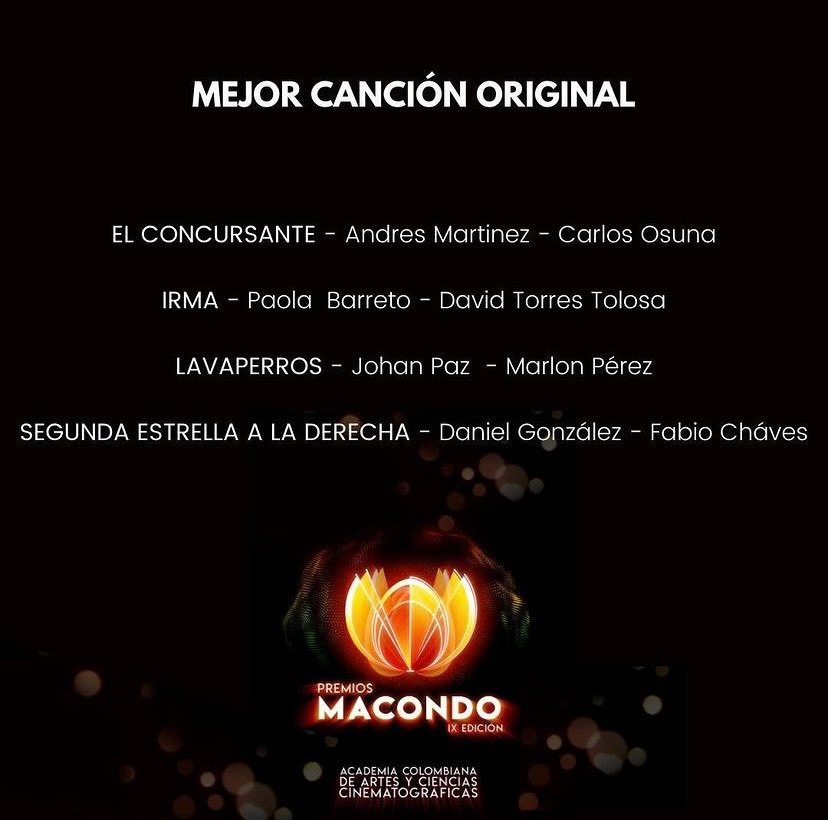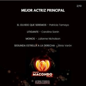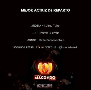 Second Star on the Right gets nomination for Best Actress (Silvia Varón), Best Non Leading Actress (Diana Wiswell), Best Non Leading Actor (Andrés Jiménez) and Best Original Song at the 9th Macondo Awards (Daniel Gonzáles, Fabio Chável).